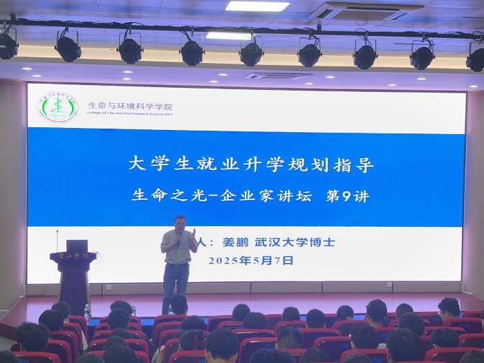 5月7日,生命与环境科学学院“生命之光”企业家讲坛第九讲在文端楼二楼报告厅举行,武汉大学姜鹏博士作题为“大学生就业升学规划指导”的主题报告,报告由生命与环境科学学院相关负责人主持。