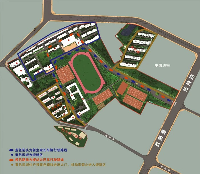 1.9月6日、7日6:30-16:30,率水校区、横江校区教职工(含家属、经营单位人员)的机动车辆禁止驶入迎新区;