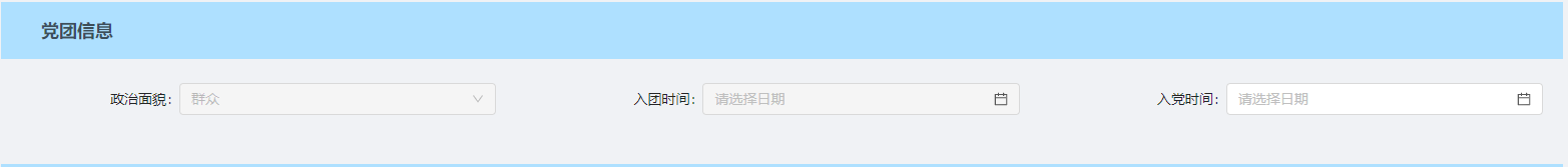 2.党团信息:入团时间(党员、团员填写)、入党时间(党员填写)。如下图: