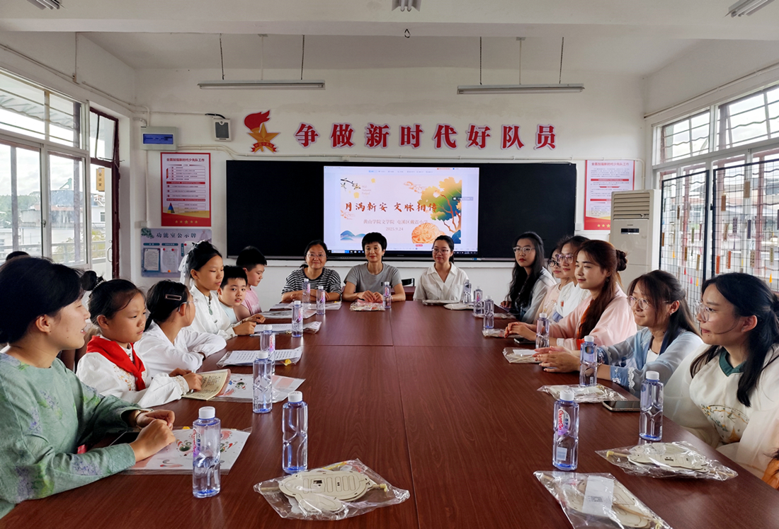 为进一步推动大中小学思政教育一体化建设,弘扬中华优秀传统文化,9月24日,文学院走进戴震小学,共同开展了一场以“月满新安•文脉相传”为主题的中秋文化雅韵共建活动。