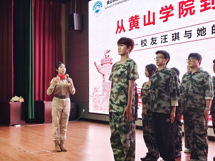 在纪念中国人民抗日战争暨世界反法西斯战争胜利八十周年之际,数学与统计学院于9月24日晚上在横江校区报告厅举办优秀校友报告会,特邀刚刚参加“九三”阅兵的该院优秀校友汪琪重返母校交流。报告会由党总支书记刘双四主持,院长胡建伟,团委负责人任小华和专职辅导员鲁韵、唐喾婕及200余名学生参与此次活动。