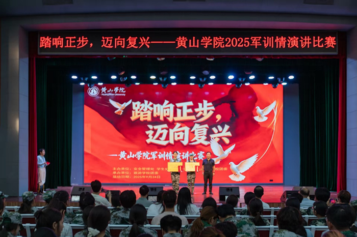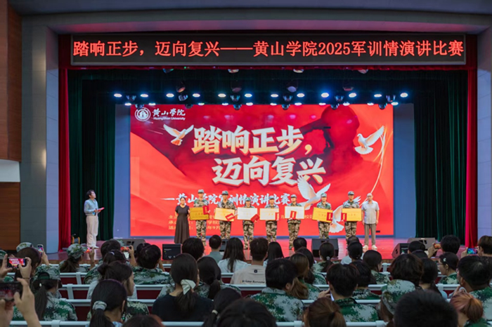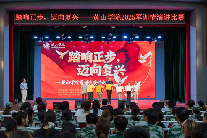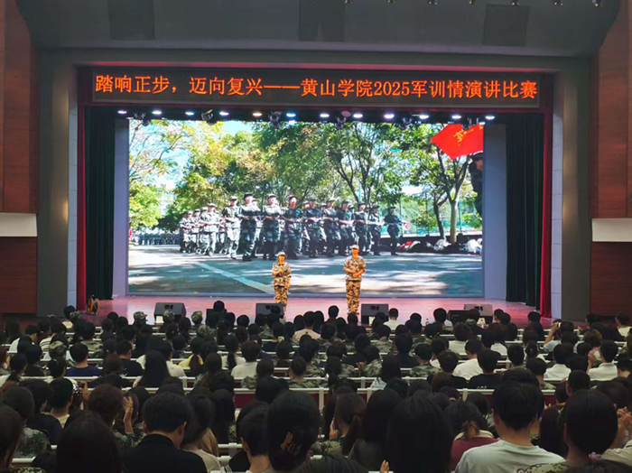 为充分展现军训成果,进一步提升大学生的思想政治觉悟,激发爱国热情,增强国防观念和国家安全意识,9月24日晚,由安全管理处、学生处、黄山市国防动员办公室、校团委联合主办,旅游学院承办的Beat365中文官方网站“踏响正步 迈向复兴”军训情主题演讲比赛在大学生活动中心大礼堂拉开帷幕。学工委部门领导应邀担任评委,各学院学生代表600余人参与活动。
