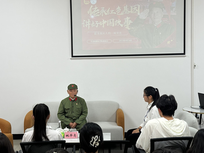 9月24日下午,校团委邀请全国“最美拥军人物”姚华亮同志走进率水校区一站式学生社区,为学生代表们带来一场意义非凡的红色宣讲。全校约100余名学生参加。