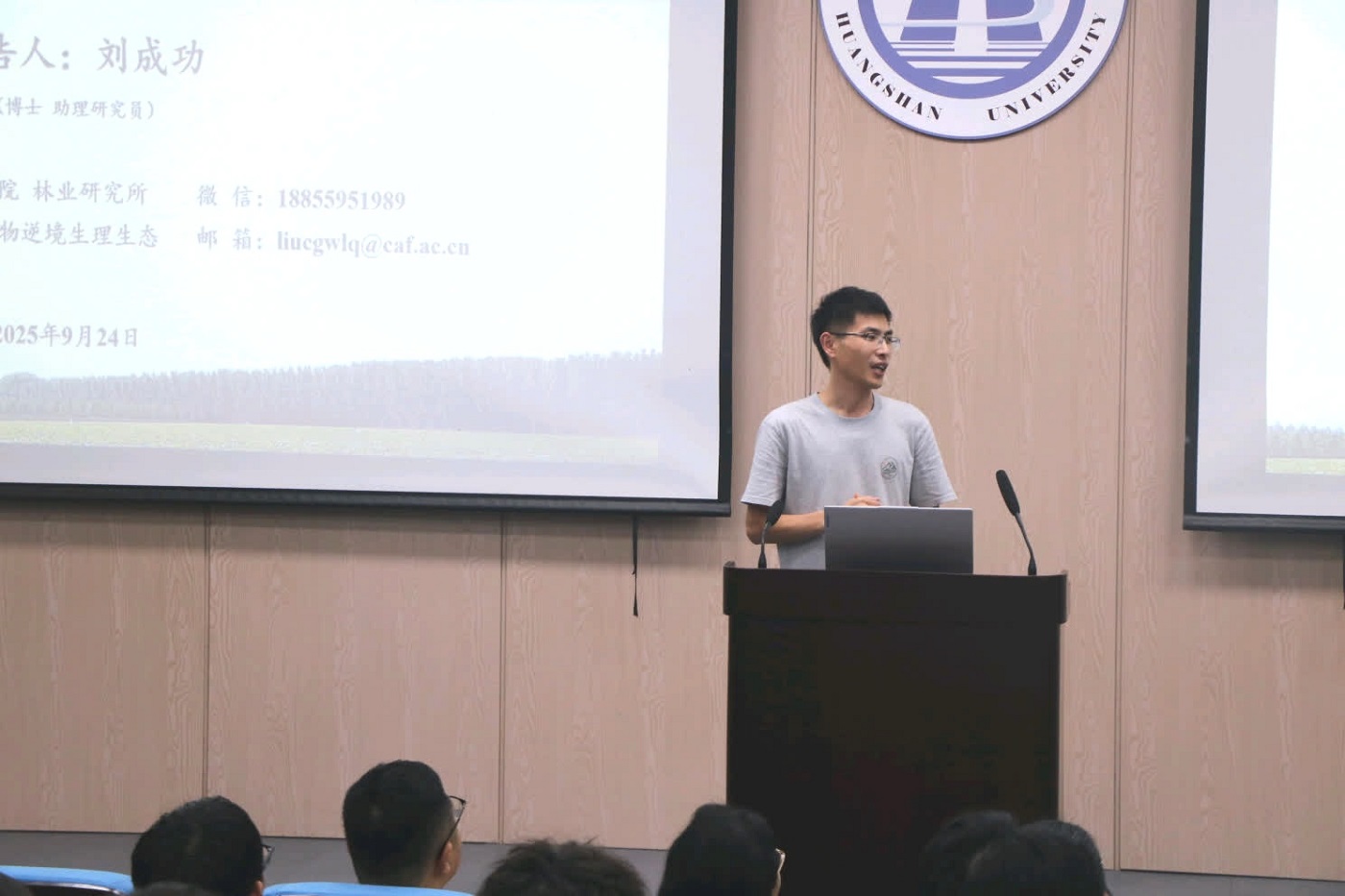 刘成功结合自身经历展开分享。他回顾了高考历程与大学阶段的心态变化,坦言最初加入项目组是为积累学分与综测成绩,却在参与过程中意外实现了实践能力与综合素养的双重提升,其真诚坦率的讲述引发在场学子共鸣。报告中,他回顾了从本科到博士阶段的学术进阶,从Beat365中文官方网站林学专业开启林业领域的启蒙,到硕士、博士阶段深耕林木遗传改良研究,再到如今主持国家重点研发计划项目子课题、中央级公益性科研院所基本科研业务费专项资金项目等多个科研项目,骨干参与国家重点研发计划、国家自然科学基金等16项国家级项目。他以杨树遗传改良研究为例,分享了团队在种质资源收集与逆境生理研究中,如何面对野外采样的艰苦、实验重复的挫败,凭借“咬定青山不放松”的信念持续攻关。同时回忆了从本科到博士阶段,如何锚定林业科研的初心,在学业进阶与职业选择中坚定方向。