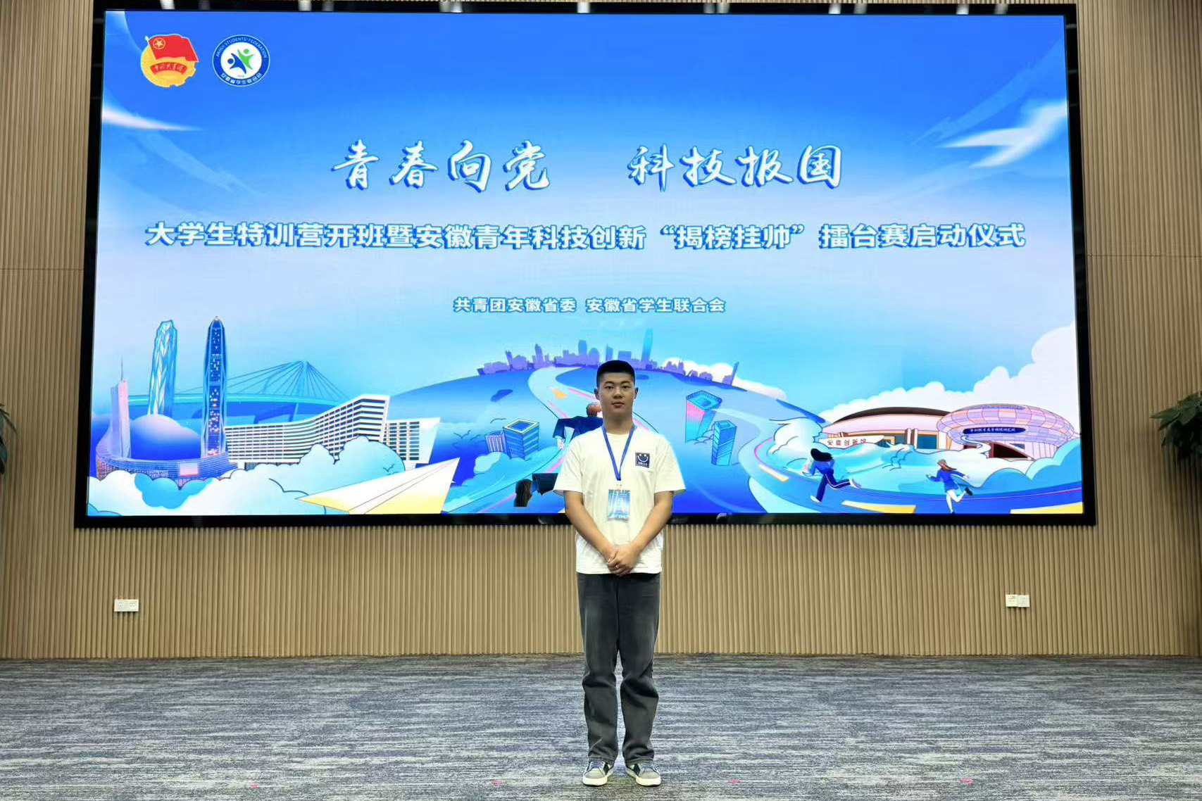 此外,石建飞同学还受邀参与了由团省委举办的第一期 “青春向党 科技报国” 大学生特训营封闭培训。开营仪式上,团省委书记陈明生、团省委副书记周宇出席活动并与学员交流,来自中国科学技术大学、合肥工业大学、安徽大学等省内32所高校的66名青年学子齐聚一堂,共同学习前沿科技知识、探讨创新发展路径,在思想碰撞中凝聚科技报国的青春力量。