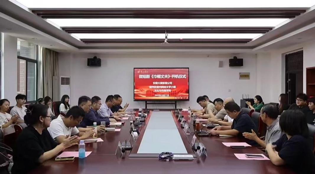 10月11日上午,文化与传播学院在文澜楼320会议室举行微短剧《巾帼丈夫》开机仪式。该剧由安徽大麦影视公司投资,学院师生共同参与创作,以明代徽州女性胡重为主角,讲述她设计并主持建造宏村水系的历史故事,展现徽州文化的深厚底蕴与女性智慧。