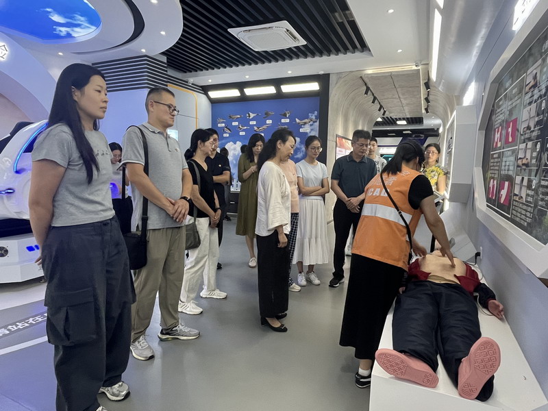 在讲解员的引领下,大家依次参观了“认识人民防空”“人防工程地下漫游”“防空警报试听”“应急救护介绍”“模拟空战体验”等展区,通过图文并茂的介绍和丰富的实物展示以及沉浸式的互动体验,党员们系统了解了当前的民防工程建设和先进的现代科技民防设备。在互动体验环节,大家积极参与“VR体验”、心肺复苏、防空袭击战模拟枪法射击等技能演练,在实践中加深了对人防技能的掌握,现场学习氛围十分浓厚。