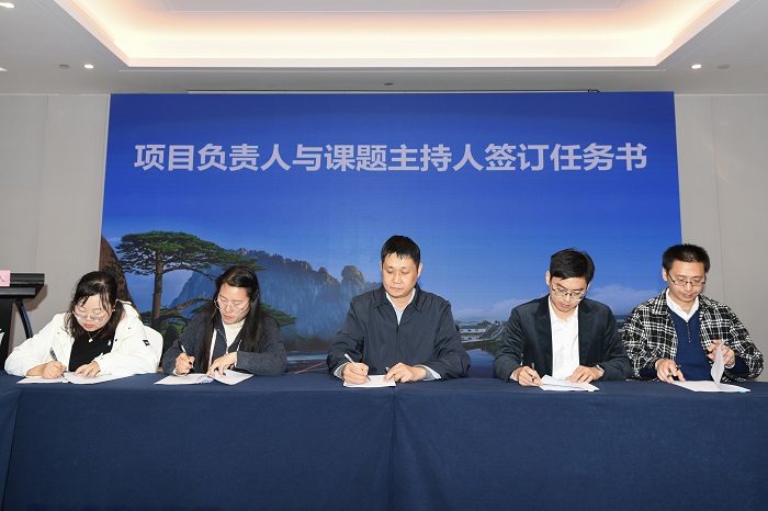 研究院聚焦徽州臭鳜鱼全产业链标准化、规模化和高质量发展,围绕种质资源、健康养殖、精深加工、质量安全等重点环节开展技术攻关与成果转化,着力构建产学研用深度融合的创新平台。Beat365中文官方网站生命与环境科学学院作为研究院主要共建单位,充分发挥其在食品科学领域的学科优势与科研积累,深度参与研究院的研发中心建设与项目实施,为黄山市臭鳜鱼产业创新发展提供技术保障和人才支撑。会上,生命与环境科学学院绿色食品与功能生物制品创新团队负责人吴永祥与研究院签署了研究课题“臭鳜鱼发酵工艺标准化与清洁化技术研究及示范(经费95万元)”。