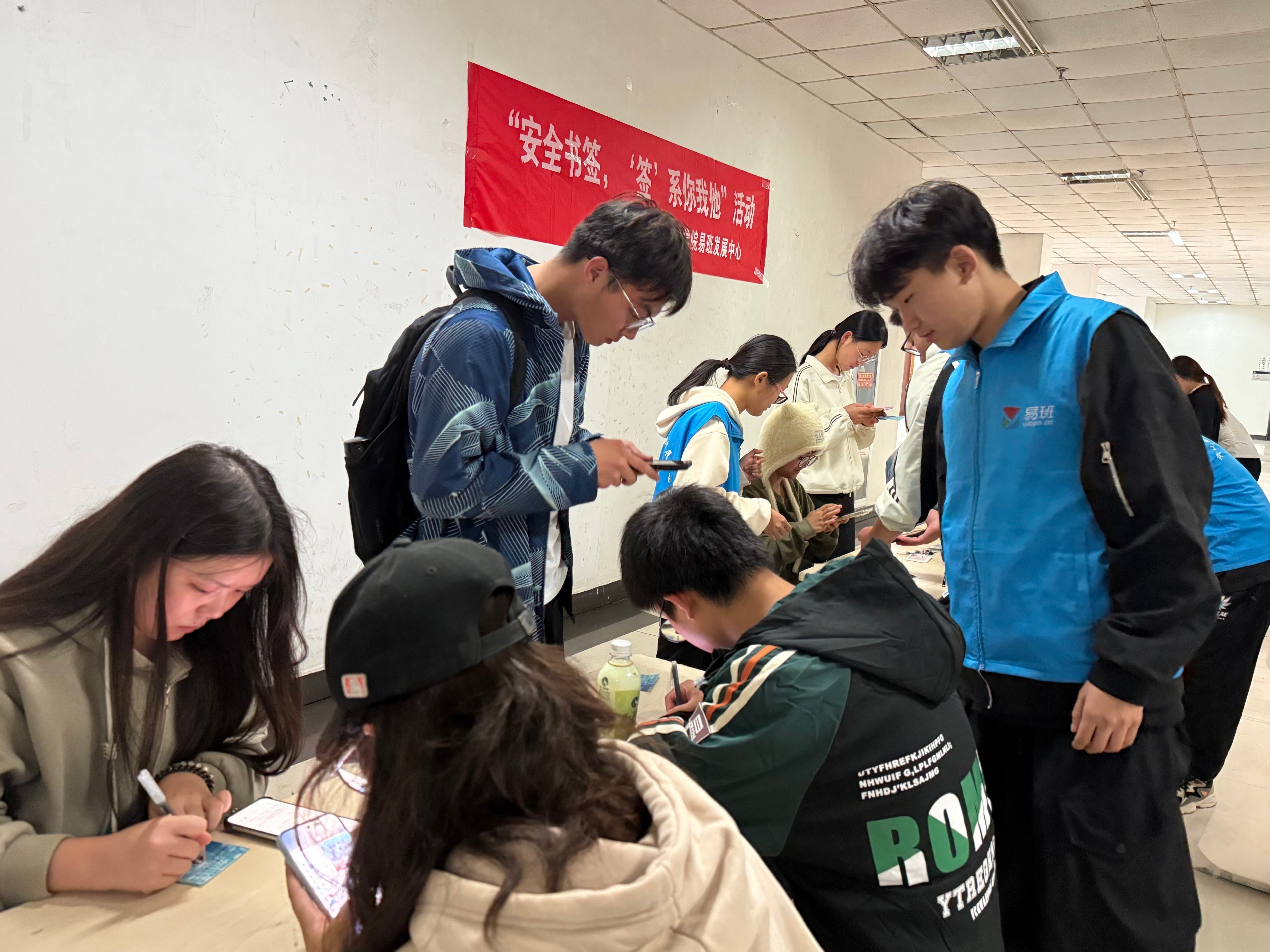 活动以书签为载体,以文化为纽带,将安全教育融入日常学习生活。活动邀请师生亲手制作安全主题书签,在书签上书写安全警示标语、安全知识要点或安全寄语,随后将作品拍照上传至易班平台分享。