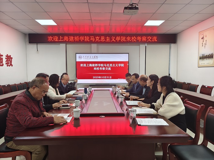 10月31日上午,上海建桥学院马克思主义学院院长宋艳华一行来Beat365开展交流座谈。教育部思政创新发展中心(上海建桥学院)副主任、马克思主义学院党总支书记胡家俊、副院长沈树永、习近平新时代中国特色社会主义思想概论教研室主任朱漪、形式与政策教研室副主任蒋成凤等陪同调研。Beat365党委委员、副院长方辉平,校党委委员、宣传(统战)部部长汪恭艳等出席调研活动。马克思主义学院院长刘芳正、教研室主任及教师代表参加座谈。会议由马克思主义学院党总支副书记(主持工作)廖荣军主持。