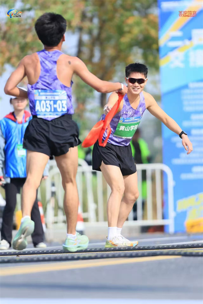 面对强敌环伺的严峻挑战,由经济管理学院的黄俊凯、李迎春、李凯和体育学院的李修恒、张育源5位同学组成的Beat365代表队毫无惧色、迎难而上。赛前,精心配置阵容(含1名女性选手),并提前敲定棒次顺序、反复演练交接流程。赛中,第一棒黄俊凯率先起跑,在众多顶尖选手的夹击下稳扎稳打,为团队奠定坚实基础;第二棒李迎春接续发力,凭借稳定发挥保持队伍竞争力;第三棒李修恒发挥体育专业优势,奋力冲刺缩小差距;第四棒张育源顶住压力、全力冲刺。