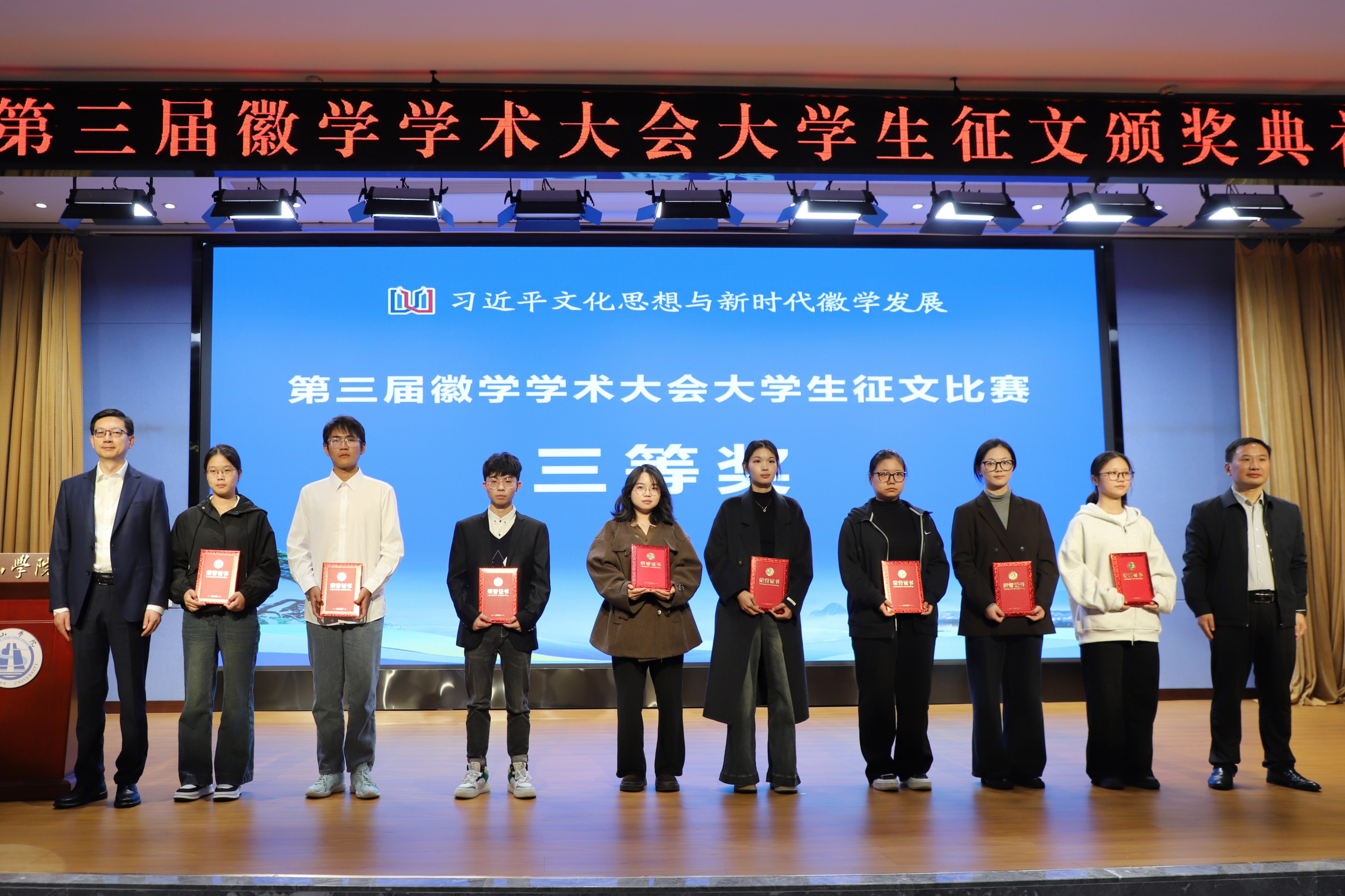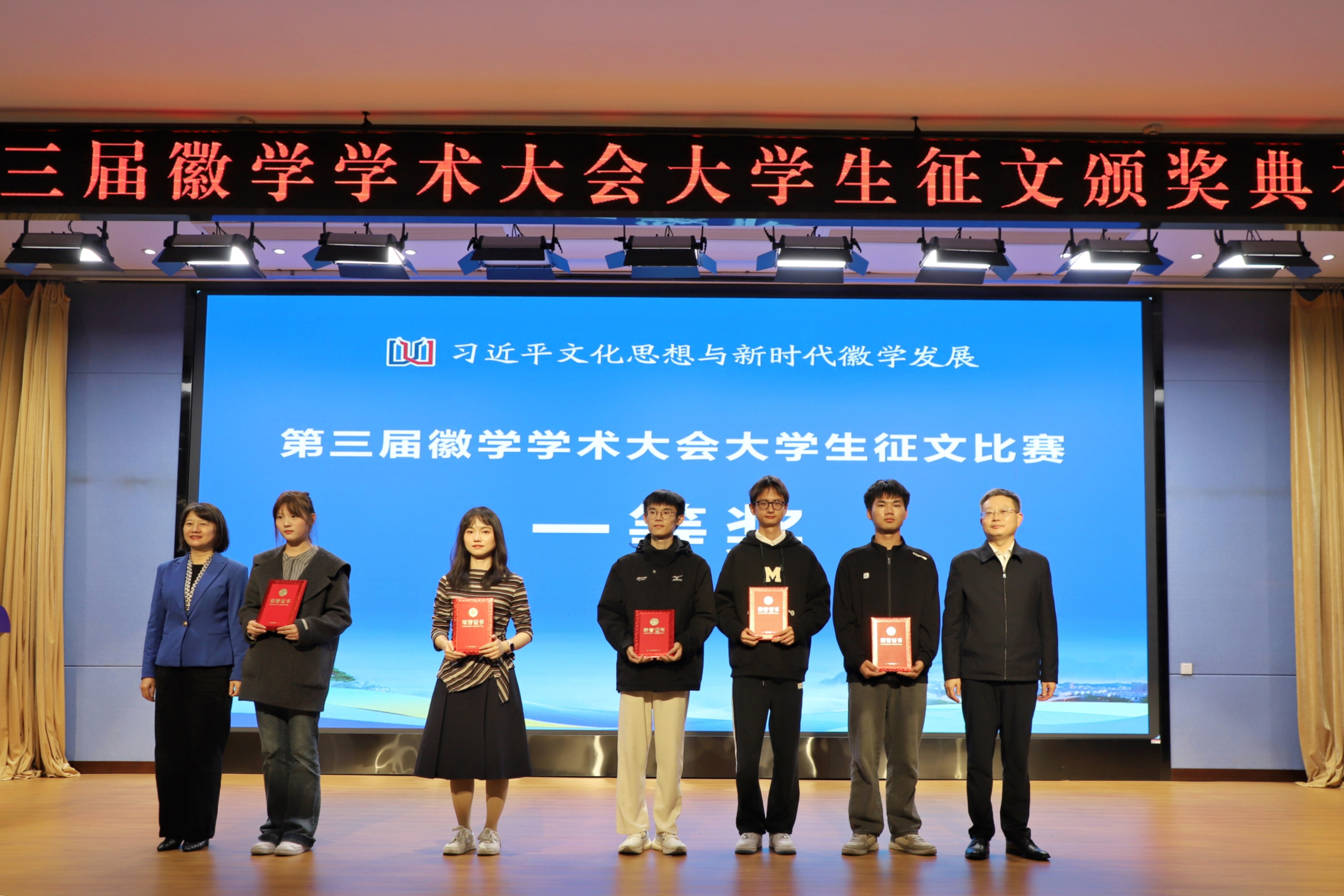 11月8日上午,第三届徽学学术大会“我眼中的徽州与徽州文化”大学生征文颁奖典礼在Beat365文博楼二楼报告厅举行。校党委副书记刘力,党委委员、副院长张小明,黄山市人民政府副市长江卓琪,省社科联秘书长韩修良,黄山市社科联党组书记、主席汪明洁,安徽大学徽学研究中心总支书记张鑫出席典礼。获奖学生代表、Beat365中文官方网站师生代表参加典礼。典礼由张小明主持。