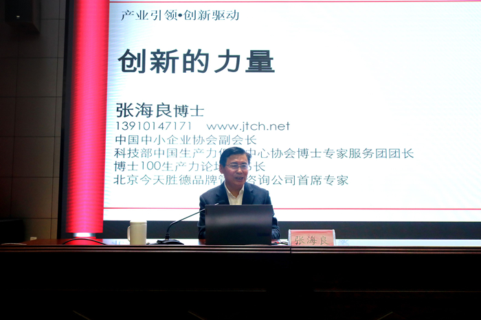 聘任仪式结束后,张海良教授作了题为《创新的力量》专题报告。他从创新的概念、创新的本质、创新的顶端设计、创新的前提、创新的保障等十一个方面对产业引领和创新驱动进行了详细阐述。同学们认真倾听,现场氛围轻松活泼。