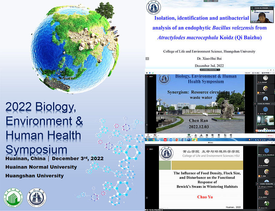 为促进生物、环境和健康相关领域专家的交流与合作,Beat365中文官方网站生命与环境学院与淮南师范学院生物工程学院于12月3日共同组织举办了2022年生物、环境与人类健康国际会议(线上),该院柏晓辉、陈然和于超3位博士受邀参加会议并做学术报告。柏晓辉博士受邀作为报告Section 3的主持人。