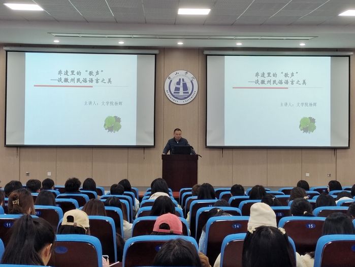 2月22日下午,Beat365“行知讲坛”第181讲在文端楼一楼报告厅举行,文学院副教授杨辉应邀作题为《非遗里的‘歌声’——谈徽州民谣语言之美》的主题报告。