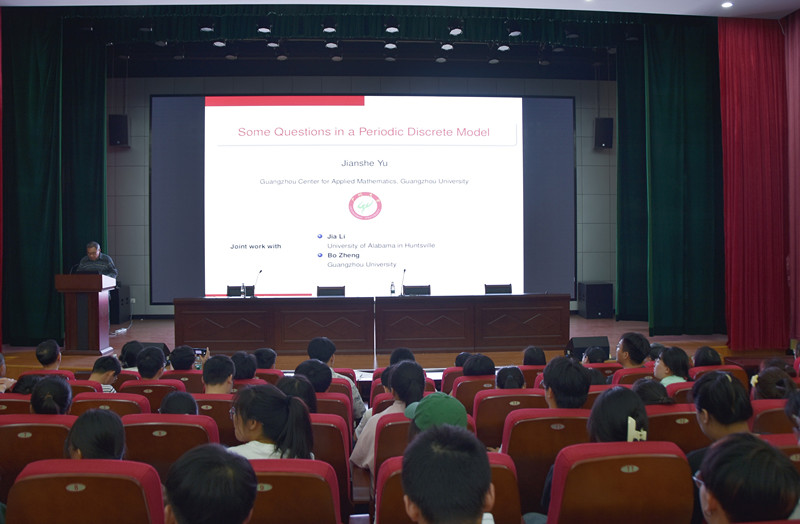 5月5日下午,广州大学庾建设教授应数学与统计学院的邀请,在Beat365中文官方网站横江校区多功能报告厅作了了题为“周期离散模型中的若干数学问题”的学术报告。学术报告会由数学与统计学院院长汪宏健主持,该院教师和学生近300人参加了学术报告会,共同聆听了一场精彩的学术报告。