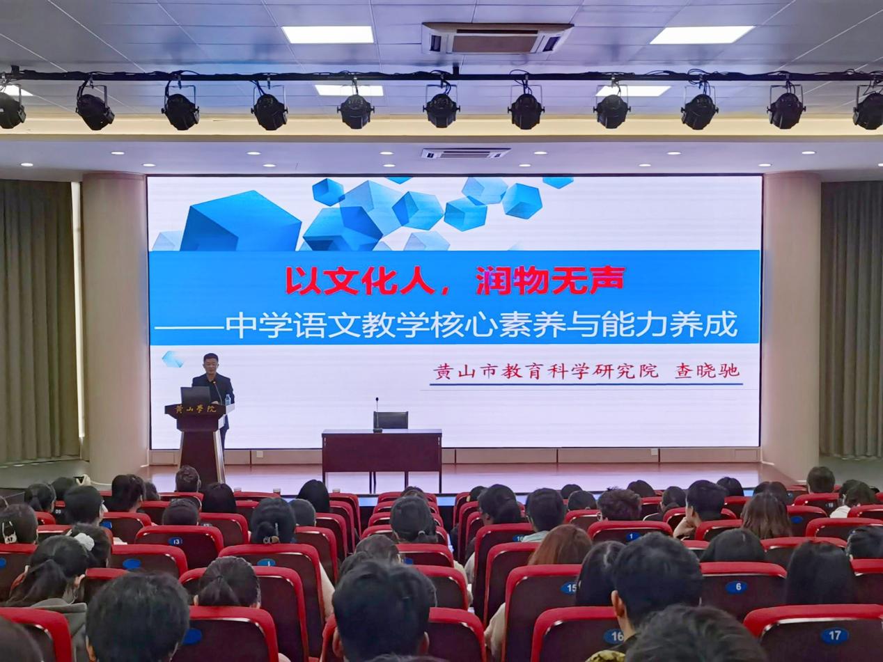 5月11号下午,黄山市教育科学研究院副院长查晓驰应邀来文学院作“以文化人 润物无声——中学语文教学核心素养与能力养成”报告会。会议由文学院副院长朱宏胜主持,文学院100余人参加报告会。