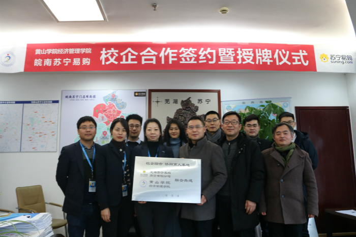 1月2日至3日,经济管理学院院长胡永政带队前往芜湖苏宁易购有限公司进行考察,并与芜湖苏宁易购商贸有限公司举行校企合作签约仪式。胡永政与苏宁易购芜湖大区连锁平台公司总经理杨萍代表双方签订协议。