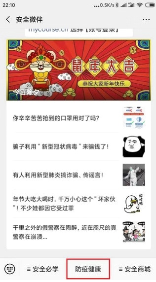 2.关注微信公众号“安全微伴”进入“防疫健康”栏目
