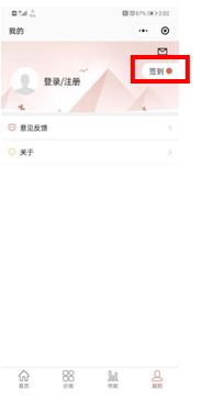 3、登录成功后,点击签到,签到及做任务都可获取积分;
