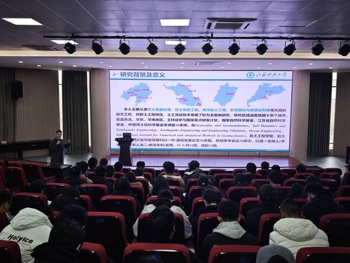 12月9日上午,建工讲坛第10讲在率水校区文端楼二楼报告厅举行,建筑工程学院2007级土木工程专业优秀校友,江苏科技大学副教授张雷作题为“富水低渗性软土的低碳固化方法研究进展”的学术报告。建筑工程学院副院长邓林,土木工程专业师生共200余人参加报告会,报告会由邓林主持。