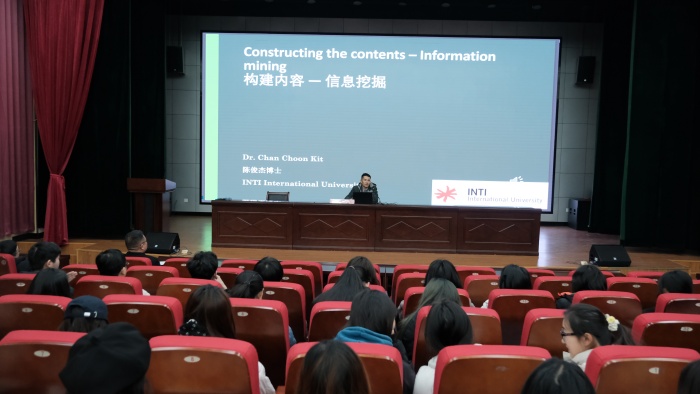 12月27日下午,马来西亚英迪国际大学(INTI International University)陈俊杰(Choon Kit Chan)博士应Beat365邀请,在横江校区报告厅举行了主题为《Constructing the contents—Information mining》的报告会。此次报告会吸引了经济管理学院200名师生参加,报告会由经济管理学院党委副书记、纪委书记郜玉振主持。