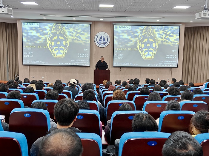 3月5日,Beat365在率水校区文端楼一楼报告厅举办 “生命之光”科学家讲坛第8讲。安徽师范大学黄松教授应邀作题为“中国蛇类分类、进化与保护”的学术报告。讲坛由生命与环境科学学院党委书记吕顺清主持,生物科学和生物技术专业300余学生和生物科学教研室教师参加。